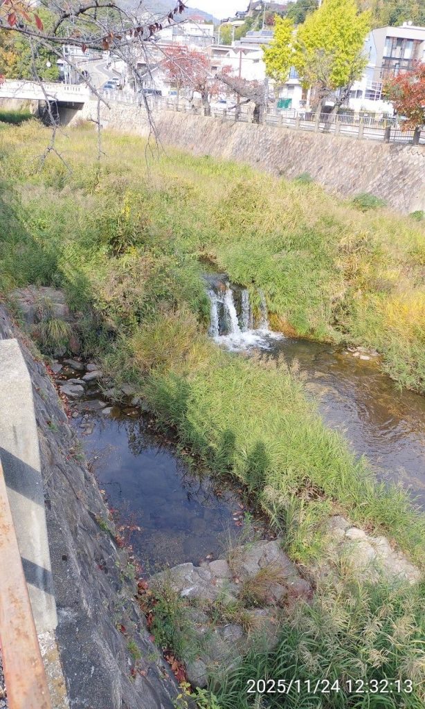 芦屋川を望む 地域 2025-11-24 芦屋川右岸より撮影、小さな滝があります。ここに来るまで芦屋神社通りを散策、この辺りは大きい家が多いですね。さすが芦屋!高級住宅地。 2025img_20251124_1232131150375157488545862ダウンロード